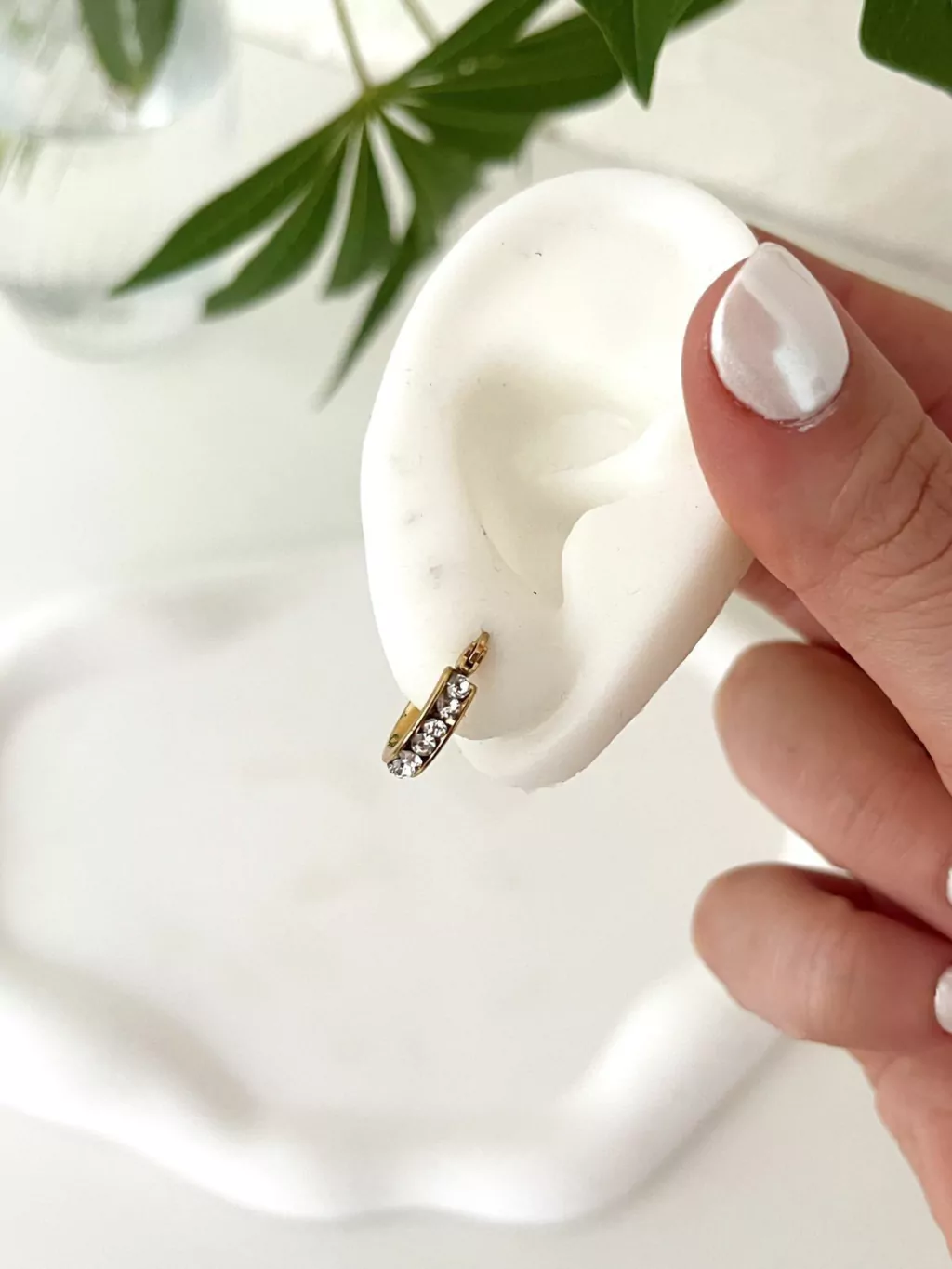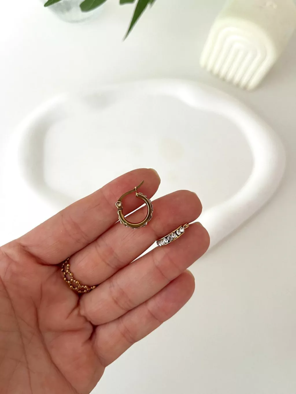 Son argollitas lisas con strass, lo hace super delicado y fino.