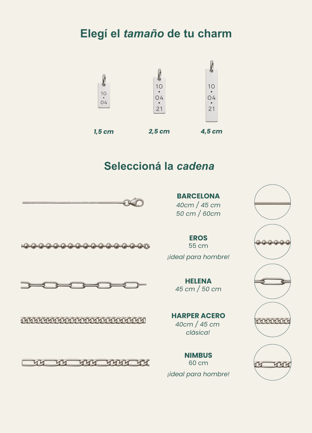 Tamaño del dije; podes elegir entre 1,5cm / 2,5cm o 4,5cm