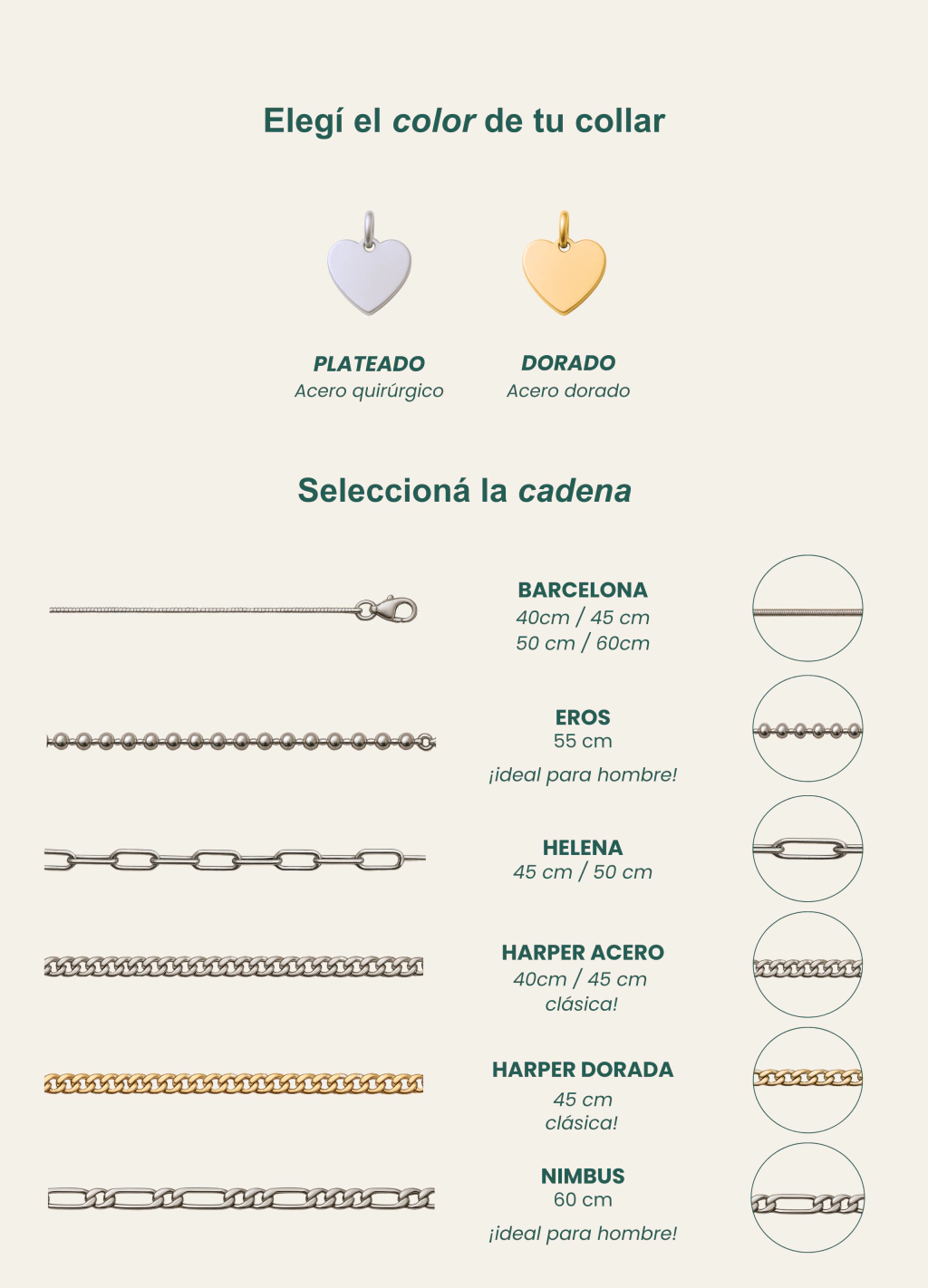Podes elegir la cadena y tipografia que mejor se adapte a tu estilo para tu dije (ver ultimas fotos)