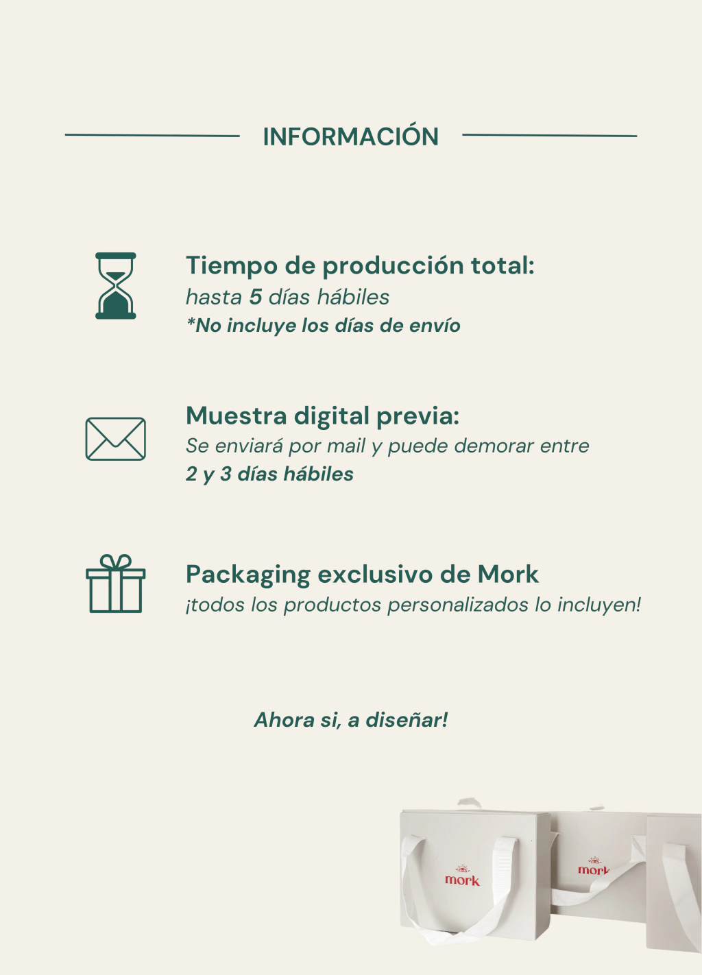Una vez aprobada la muestra, el tiempo de producción es de 2 a 3 días hábiles